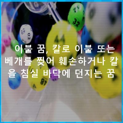 โ ์ด๋ถ๊ฟํด๋ชฝ,,,, ์นผ๋ก ์ด๋ถ ๋๋ ๋ฒ ๊ฐ๋ฅผ ์ฐข์ด ํผ์ํ๊ฑฐ๋ ์นผ์ ์นจ์ค ๋ฐ๋ฅ์ ๋์ง๋ ๊ฟ