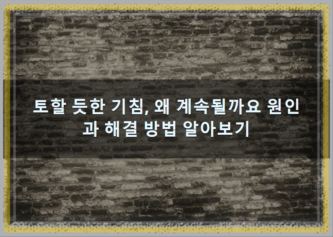 ํ ํ ๋ฏํ ๊ธฐ์นจ์ ๋จ์ํ ๊ฐ๊ธฐ๋ฟ๋ง ์๋๋ผ ๋ค์ํ ์งํ์ ์ ํธ์ผ ์ ์์ต๋๋ค. ๋ง์ฝ ์ค๋ซ๋์ ๊ธฐ์นจ์ด ๊ณ์๋๋ค๋ฉด, ๋ฐ๋์ ๋ณ์์ ๋ฐฉ๋ฌธํ์ฌ ์ ํํ ์ง๋จ์ ๋ฐ๊ณ ์ ์ ํ ์น๋ฃ๋ฅผ ๋ฐ๋ ๊ฒ์ด ์ค์ํฉ๋๋ค.